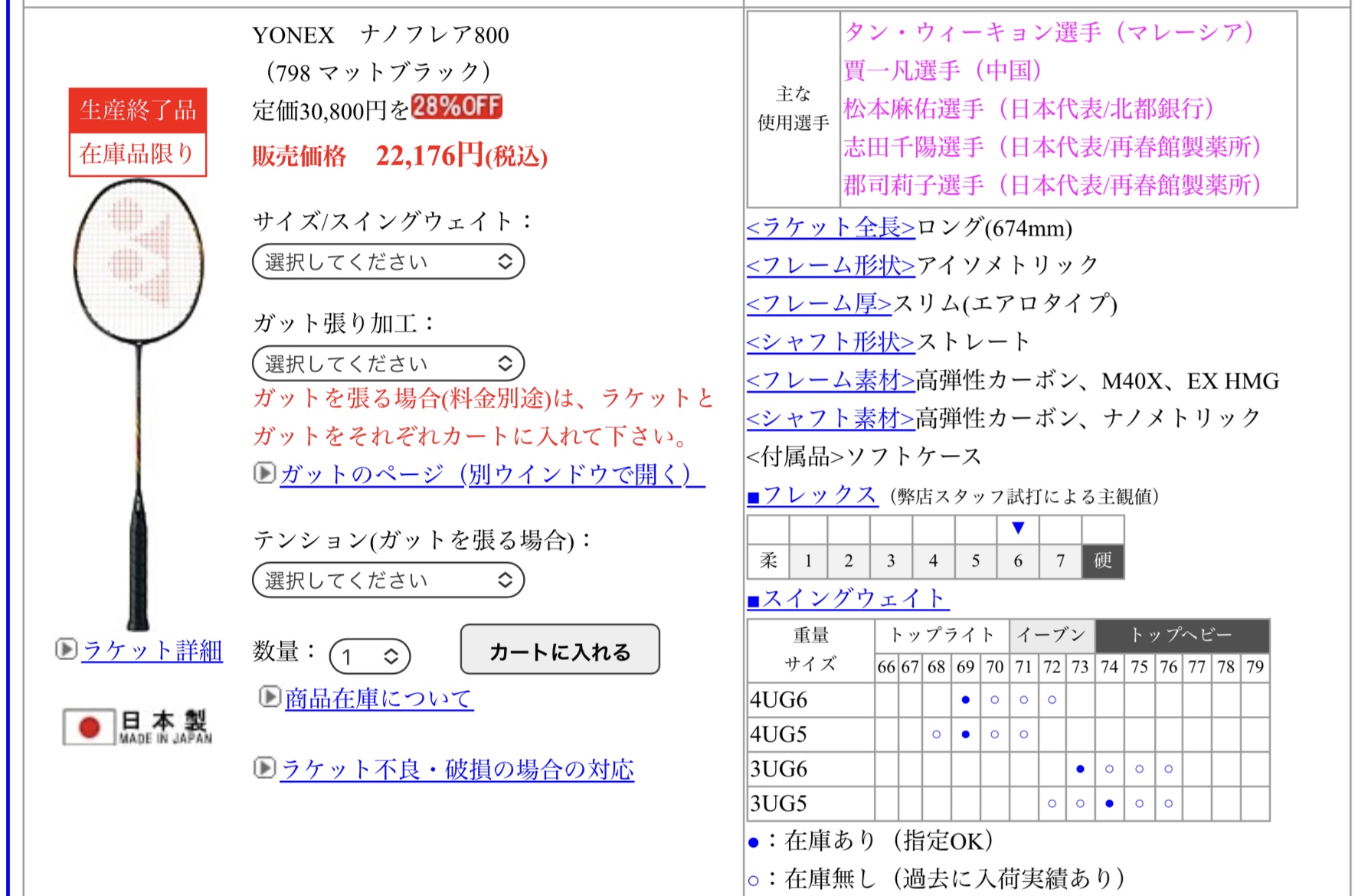 ラケット比較でよく使っている一球入魂サイトで愛用のラケットが生産終了って書いてある。