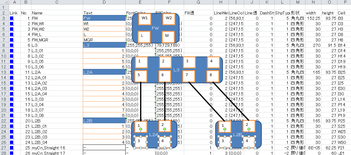 前回の構成図自動結線マクロ(その5)で書いた通り
