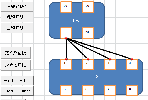 【実行後】FWのLポートから各ポートにコネクタを作成。
