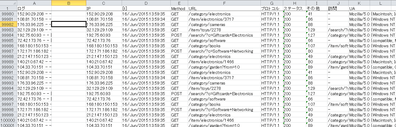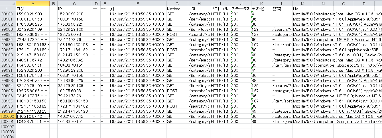 アパッチのWEBアクセスログの集計をエクセルでやりたい。