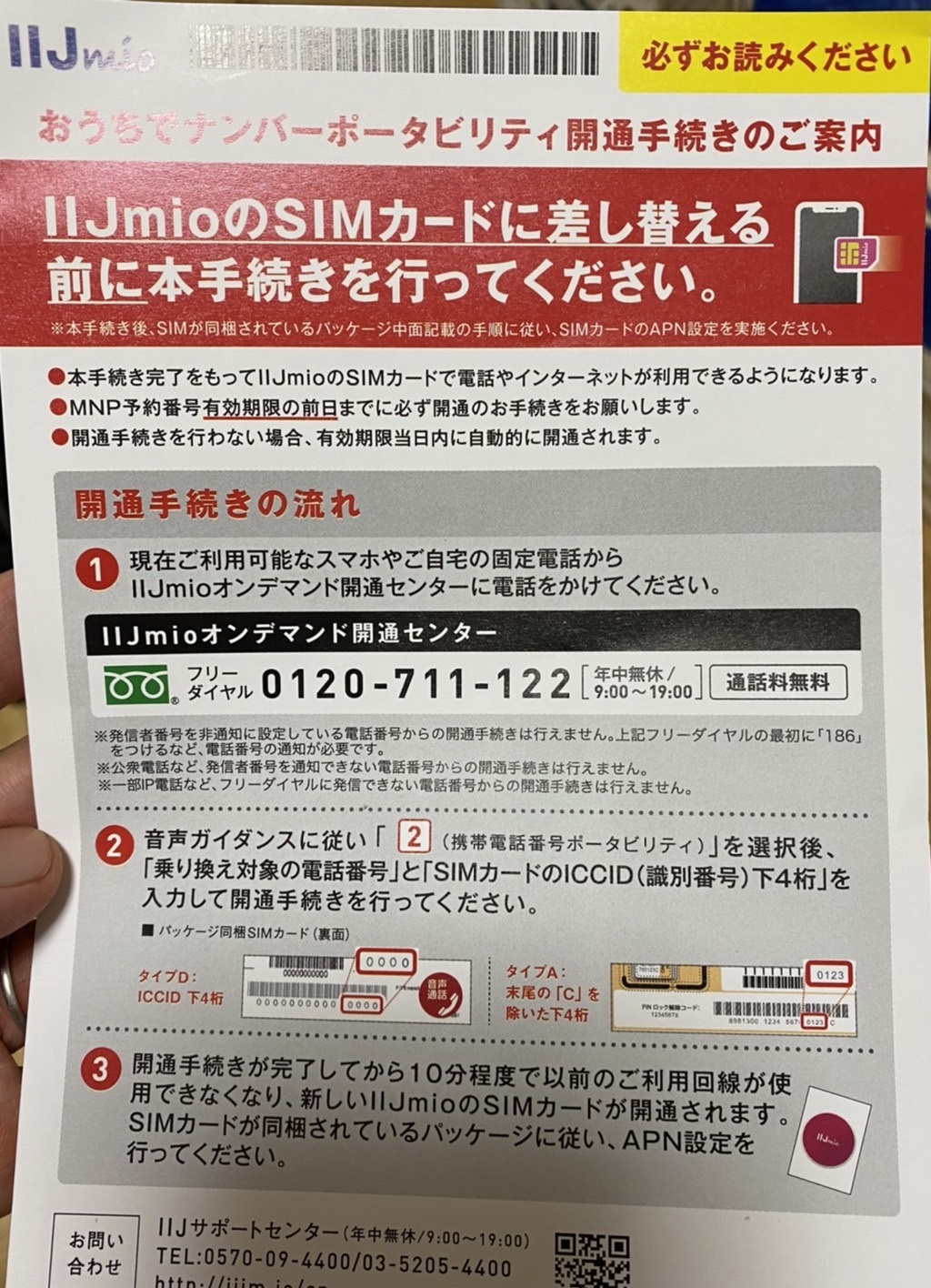 9/8に申し込んだIIJのSIMカード変更。